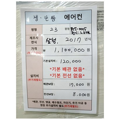 23평, 삼성, 2017년, 인버터, 2.6키로, 설치비별도
