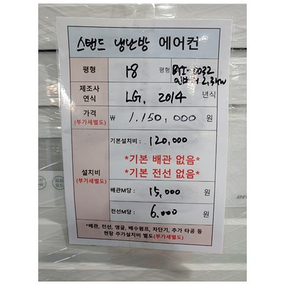 18평, LG, 2014년, 인버터2.3키로, BYI-0032, 설치비별도